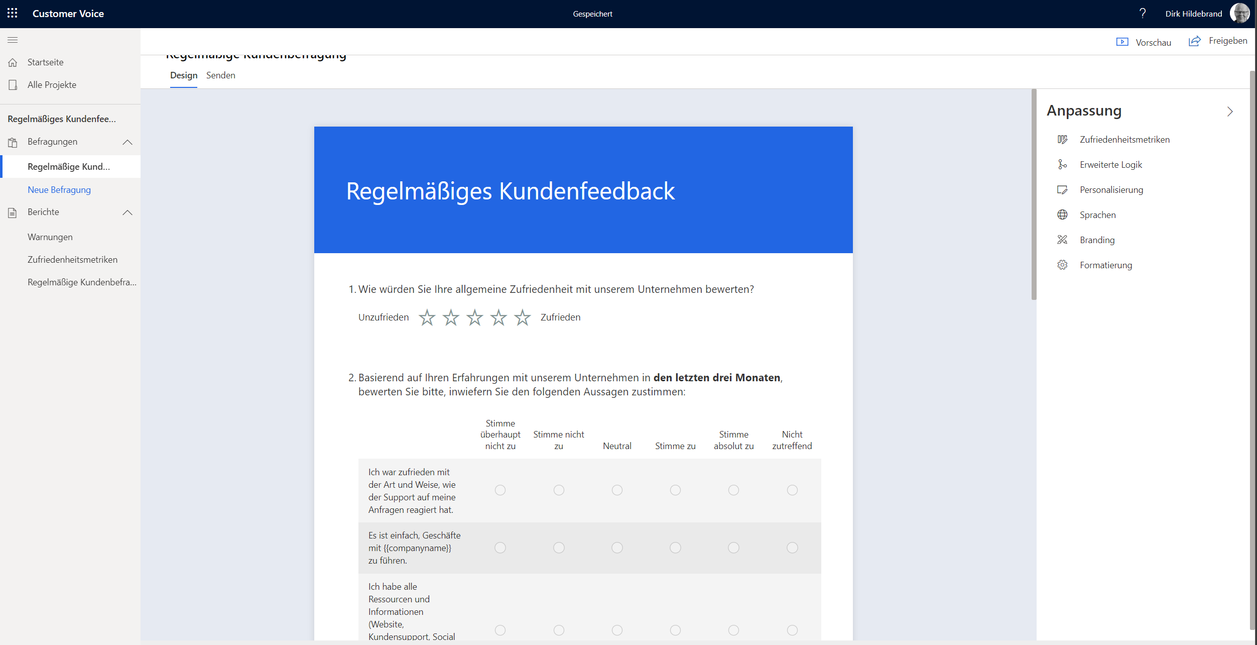 Die App „Customer Voice“ in Microsoft 365 hilft dir, Feedback von deinen Kunden zu sammeln und zu verwalten.