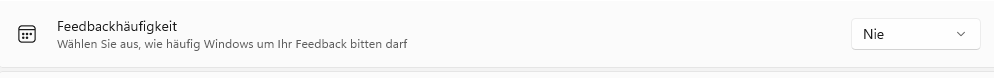 „Nie“ auswählen. Feedback-Anfragen dienen Microsofts Produktentwicklung, sind aber nicht notwendig und führen zu zusätzlicher Datenübertragung. Aus DSGVO-Sicht sollte Datensparsamkeit Vorrang haben.