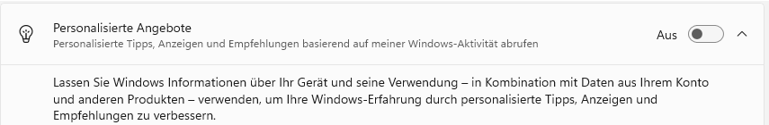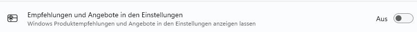 Datenschutz und Sicherheit > Windows-Berechtigungen > Empfehlungen und Angebote