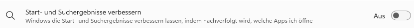 Windows überwacht, welche Apps du öffnest und wonach du suchst. Diese Daten werden genutzt, um Suchergebnisse und Startmenü-Vorschläge zu personalisieren.