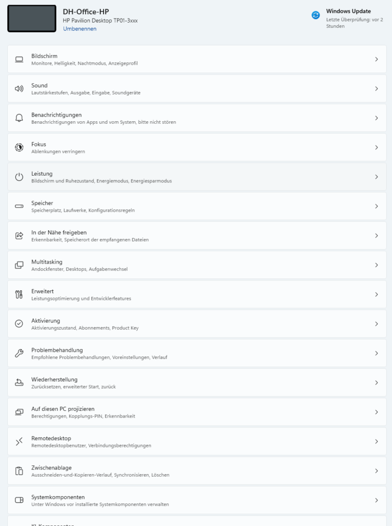 Der Bereich „System“ ist die zentrale Verwaltung für grundlegende Systemeinstellungen und Hardware-Konfiguration in Windows 11. Er umfasst 16 Hauptbereiche: