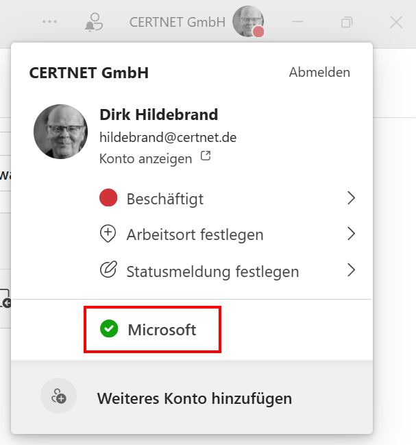 In der Abbildung kann ich über einen Klick auf Microsoft zu deren Organisation wechseln.