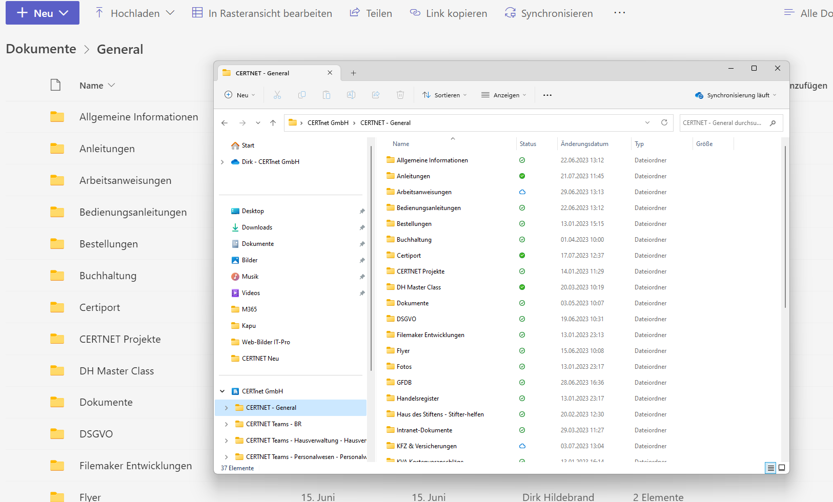 Daten in MS Teams sind mit meinem lokalen PC synchronisiert und werden im Datei-Explorer abgebildet.