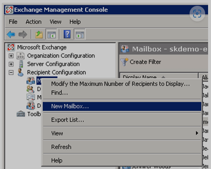- Klicke auf New Mailbox (Neues Postfach).