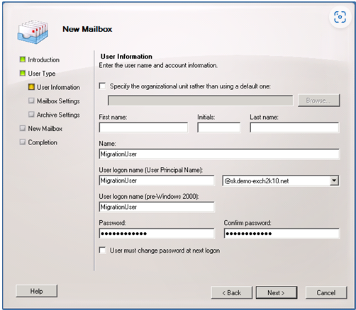 - Gib „MigrationUser“ als Login-Name ein und wähle optional eine User Principal Name (UPN) Domäne.