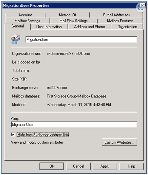 - Klicke Hide from Exchange address lists (in Exchange Adressliste verbergen) und klicke auf Ok.